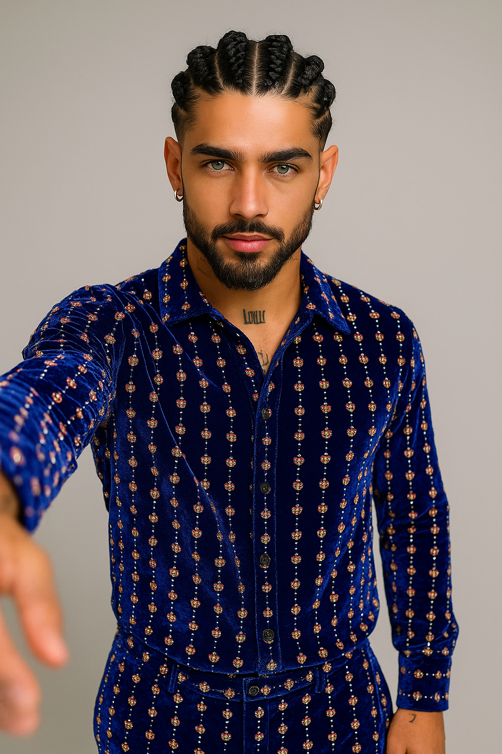 SEO Keywords: emerald velvet outfit, luxury gay clothing, velvet set for men, handmade couture, green velvet fashion.