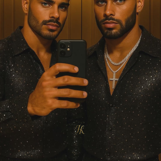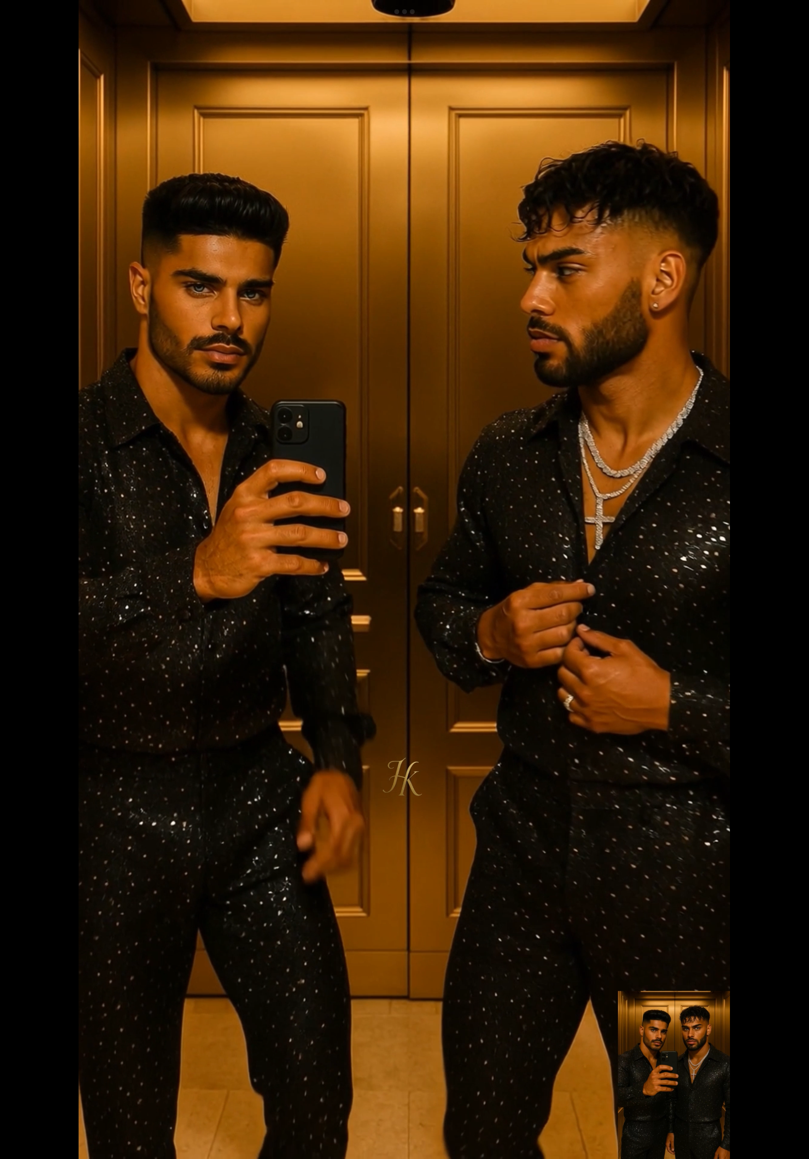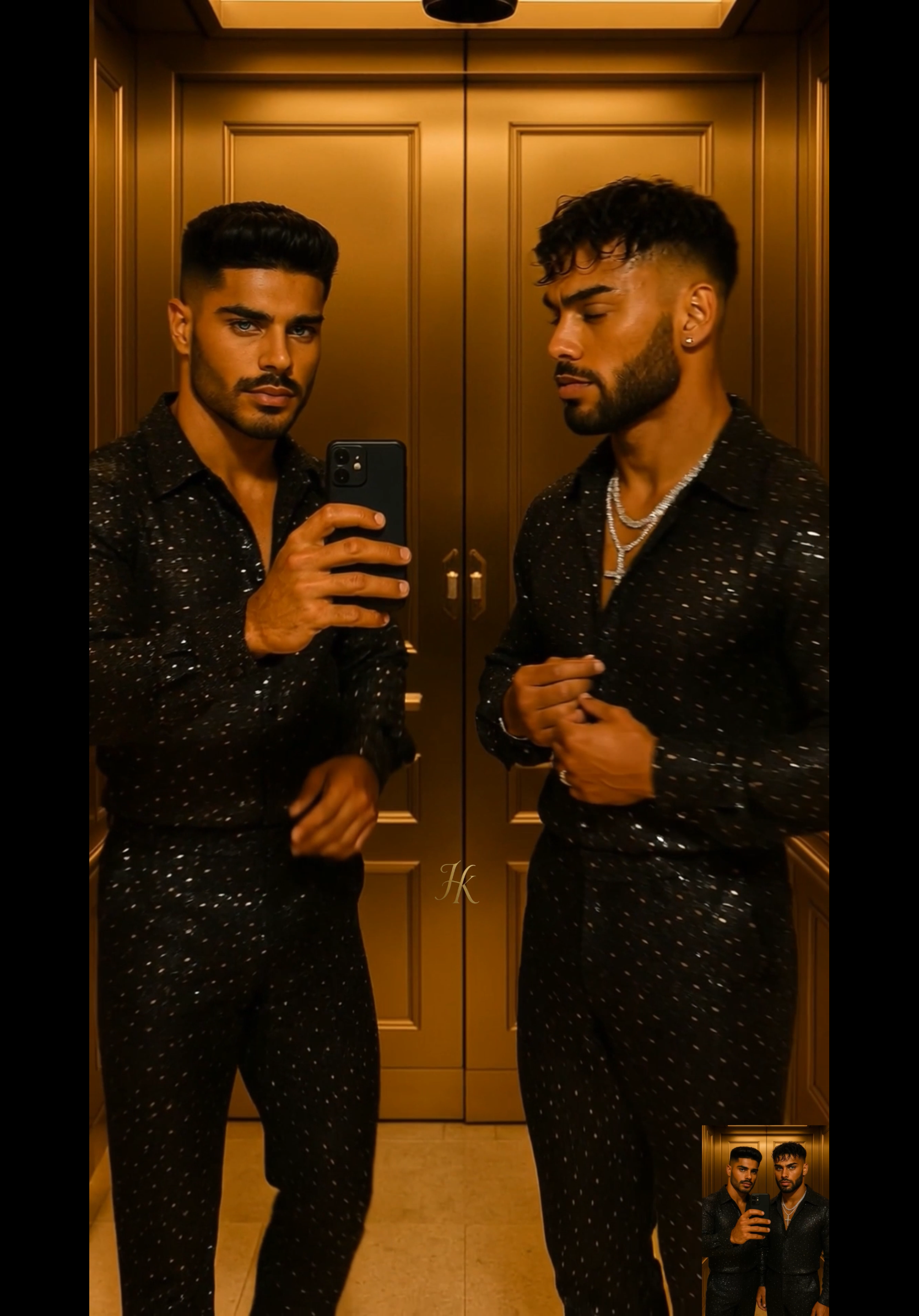 SEO Keywords: gay men sequin outfit, luxury gay fashion, couture men’s set, handmade limited edition outfit, Miami party fashion, designer gay brand, Kayib Men.