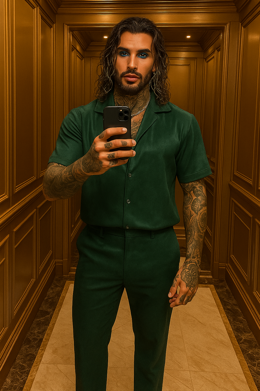 velvet outfit men, luxury gay fashion, handmade couture, Kayib Men, velvet shirt and pants set.